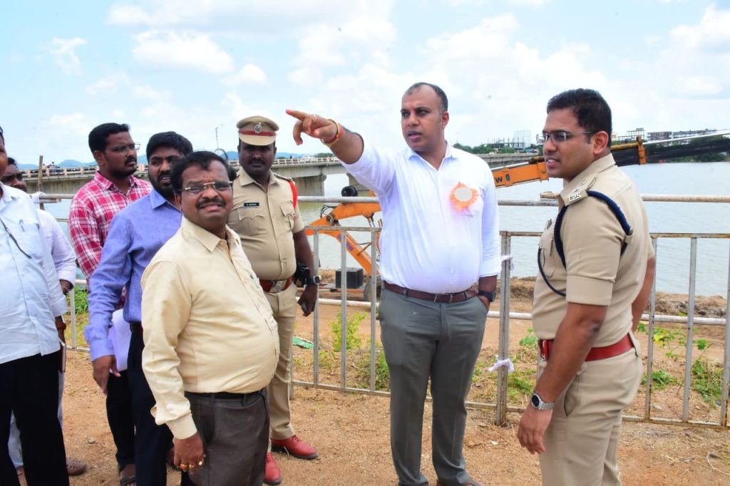 RSD- Sircilla news: Collector Sandeep Kumar Jha ordered elaborate arrangements to be made for the Vinayaka immersion to be held in Sircilla on 06.09.2025. Collector and SP Mahesh B Gite inspected the arrangements being made at the bridge at Sircilla Maneru for the immersion of Vinayaka idols along with officials from various departments on 05.09.2025. The Collector and SP spoke on the occasion. The organizers of the Vinayaka mandapams were advised to move their idols in a grand manner while holding ceremonies amidst devotion. They requested everyone, including public representatives and youth, to cooperate. They called on officials from all departments to move forward in coordination and make the celebrations a success. Collector Sandeep Kumar Jha ordered that there should be a proper plan for the installation of electric lights and other facilities at the Vinayaka immersion site. He suggested that arrangements should be made on the way to and from the Vinayaka idols without any problems, that a stage and chairs should be set up for sitting, and that cranes should be kept ready. He ordered that a performance be arranged with artists. Sircilla RDO Venkateshwarlu, Municipal Commissioner Khadir Pasha, officials of the respective departments, police and others participated here.