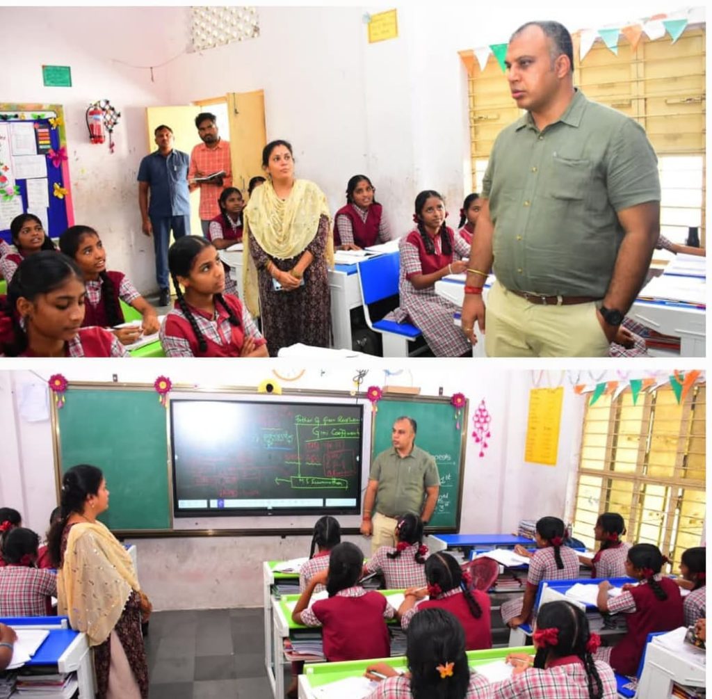 RSD-Tangallepally news: Collector Sandeep Kumar Jha conducted a surprise inspection at Kasturba Gandhi Balika Vidyalaya (KGBV) in Tangallepally mandal center on 08.09.2025 morning. On this occasion, the kitchen, cooking room, store room, and the quality of food used for meals were inspected. Is the RO plant in use? He inquired whether it was in use or not.While teaching was going on in all the classrooms, the inspection was conducted. The attendance of students, teachers, and staff was inquired. Economics lessons were taught to CEC students, and several questions were asked and answers were obtained.The Collector ordered the Panchayat Secretary to immediately remove grass and other waste from the school premises.