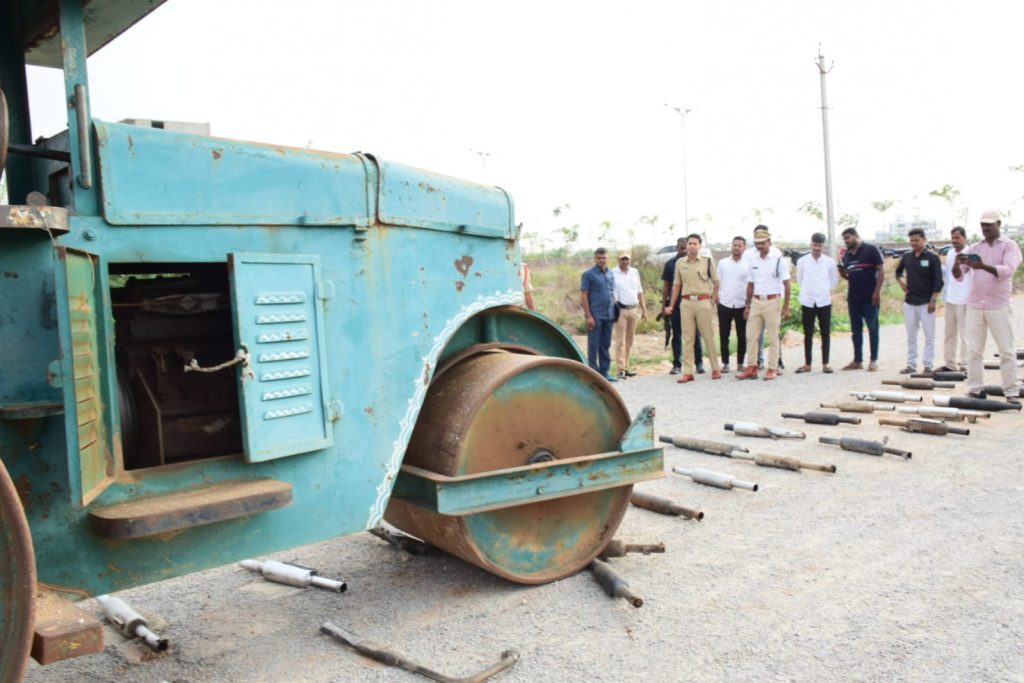 RSD- Sircilla news: Any motorist who modifies the silencers supplied by the two-wheeler with the company will face criminal action against the modified machine District SP warned. During April 2024 in the district, the police conducted a special drive against the installation of high-noise silencers in place of two-wheeler company silencers and identified 86 high-noise two-wheeler silencers and destroyed them with the help of a road roller in Sircilla Bypass area on 28.05.2024.On this occasion, the SP said that it is a crime to change the silencers of two-wheelers against the rules, and inspections have been carried out across the district with a special focus on noise pollution control and public health. In particular, two-wheeler riders are advised to use only the silencers provided by the company, warning that any motorist who modifies the silencer and causes noise pollution will face action against the vehicles as per the rules.