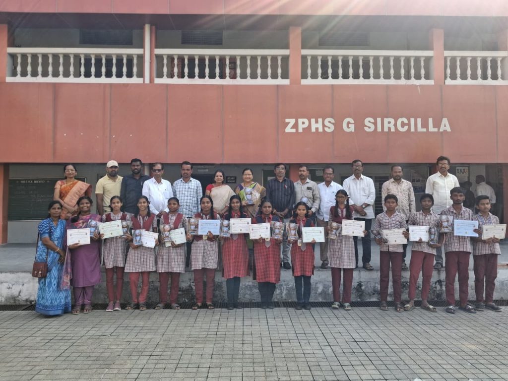 RSD-Sircilla news: On 10.11.2025, an essay writing and speech quiz competition was organized for government school students at ZPHS Girls Siricilla School under the T-Shat Telangana Principals Association. Motilal, District General Secretary of the Principals Association, said that talent competitions were organized for government school students to create awareness and interest in competitive examinations. Students selected at the district level will be sent to state level competitions. The winning students were given certificates of appreciation and mementos. In the competition,