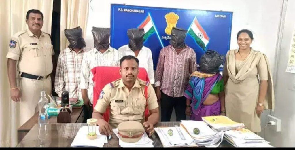 RSD-Manorabad news: The sub-registrar of Tupran, Medak district, along with four others were arrested and sent to remand in the case of registration with fake certificates. According to Manoharabad SI Karunakar Reddy, Satyanarayanamurthy and his wife Swati of Moti Nagar, Hyderabad bought a 1000 yard plot of land in Kucharam suburb of Manoharabad mandal a few years ago. Mallavarapu Arun Kumar of Hyderabad and seven others created fake documents and sold this place to him for Rs.80 lakh. The land was already registered in the name of a woman named Durga. However, the accused lured Lakshmi from Ramnagar, Hyderabad with money and morphed her Aadhaar card into Durga and registered it. But the people who sold Satyanarayana’s link documents took time and gave inconsistent answers. Finally, when he went to the plot, the real thing came to know as there was a board in the name of other people. Realizing that he was cheated, the victim lodged a complaint with the Manoharabad police in April 2024. The police arrested Tupran sub-registrar Sanathnagar Ramana, Pitla Sai Kumar, Vemula Prabhakar, Lakshmi and document writer Balakrishna.