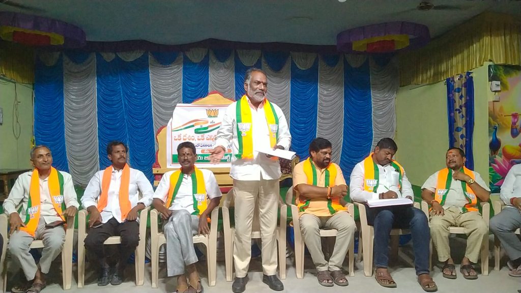 RSD-Sircilla news: A meeting on One Nation One Election was organized in the function hall under the Sircilla Town President Nagula Srinivas. The meeting was attended by the state executive members as the chief guests, Erram Mahesh, Adepu Ravinder, Guduri Bhaskar, Bolgam Nagaraju, Myna Ramprasad, Oorakonda Raju, Mogili Raju, Naveen Yadav, Raju Singh, Domala Srikanth, Konda Naresh, Enaganti Naresh and Bharatiya Janata Party Sircilla town leaders, district leaders, activists, Bhoot presidents and others.