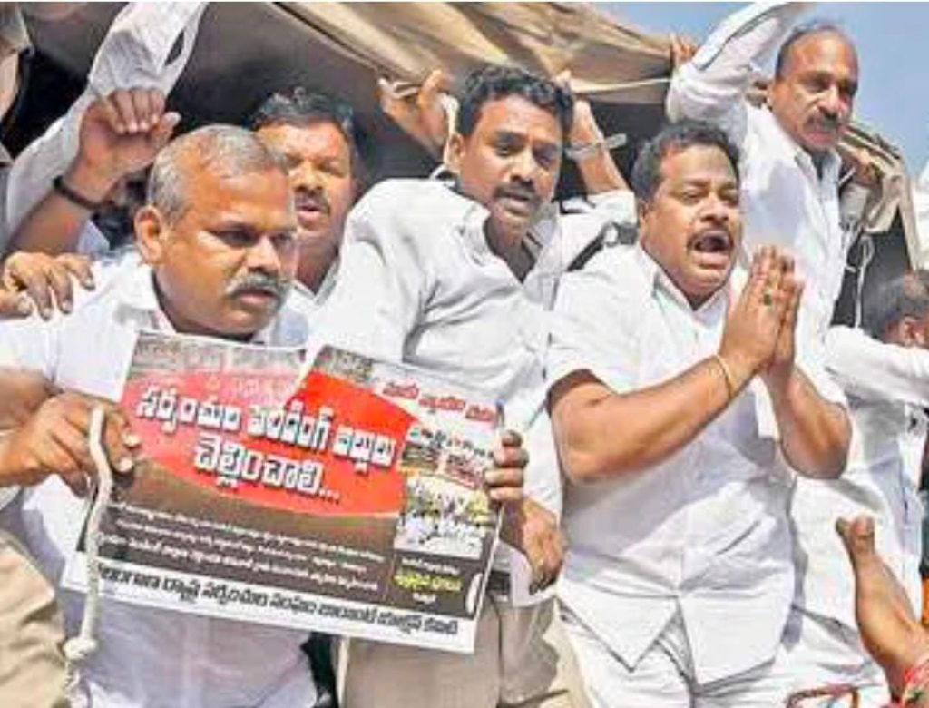 RSD-Hyderabad news: Demanding payment of pending bills, former Sarpanchs under the Sarpanchs’ Association Joint Action Committee sat on their knees and protested with placards, wearing black badges.Speaking at the event held at the state Rural Development Department office, JAC State President Survi Yadaya Gowda said that the Sarpanchs are facing many financial difficulties due to the non-receipt of pending bills. They expressed their anger that the Congress government is delaying the release of the bills by saying today or tomorrow. They accused the Revanth government of taking steps to create division among former Sarpanchs while the bills are not being released.They expressed their concern that despite meeting the CM, ministers and MLAs for the pending bills, there is no result. They announced that they will continue to organize protest programs every day until the pending bills are released.The Sarpanch, State General Secretary of the Sangam Joint Action Committee, Nagaiah, State Vice President Malliah, Secretary and leaders participated in this program.
