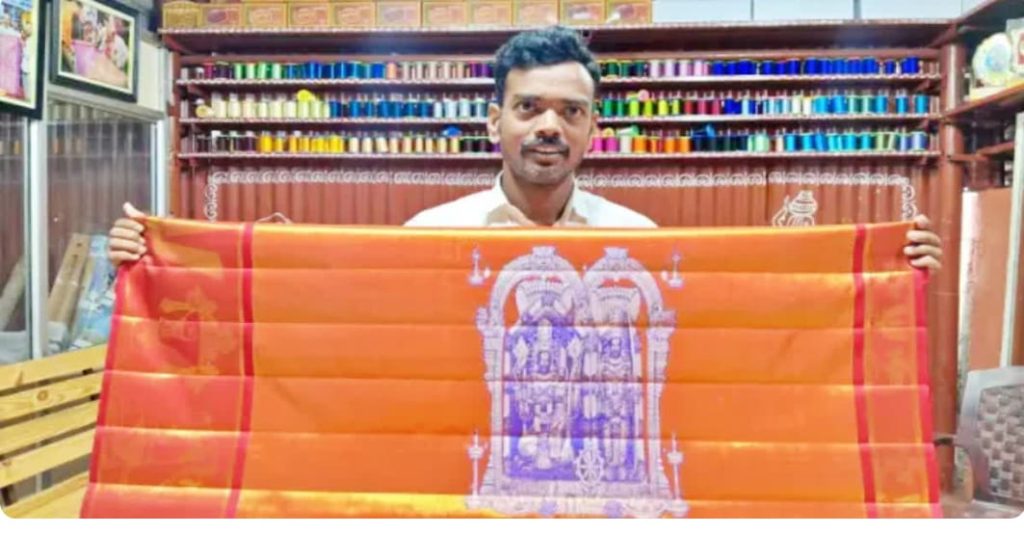 RSD- Sircilla news: On the occasion of Sri Rama Navami, the Bhadradri temple’s Mula Virat was woven on a silk saree that was woven for ten days. He painted the conch, chakra, Hanuman and Garuda on the border of the saree. Also, the verse Sri Rama Rameti was woven 51 times on the saree. This seven-yard saree made of one gram gold zari silk weighs about 800 grams. This was specially prepared by a weaver from Siricilla, Veldi Hariprasad. He requested CM Revanth Reddy to provide an opportunity to the weavers of Siricilla to weave silk clothes for the wedding of Sita Ram every year. The Sita Ram Kalyana Mahotsavam will be held on April 6th 2025 at the Mithula Stadium in Bhadrachalam as a feast for the devotee’s eyes. The authorities have already completed the relevant arrangements. Keeping in mind the rush of devotees in the presence of Lord Rama at Bhadradri on that day, the police department is making preparations to make heavy security arrangements.