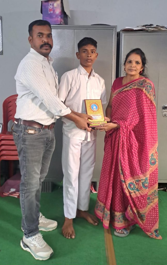 RSD-Sircilla news: Dhanush, a class 9 student of Zilla Parishad Girls High School, Siricilla, has been selected for the state level football competitions to be held under the SGF (School Games Federation). The competitions will be held for three days from November 14th  to 16th  at Don Bosco Academy, Sagar Road, Nalgonda district. Student Dhanush left on 13.11.2025 to participate in the state level competitions. On this occasion, principals Sarada, Mylaram Tirupati, gym teacher Tadukala Suresh and other teachers congratulated the student and wished him better results at the state level.