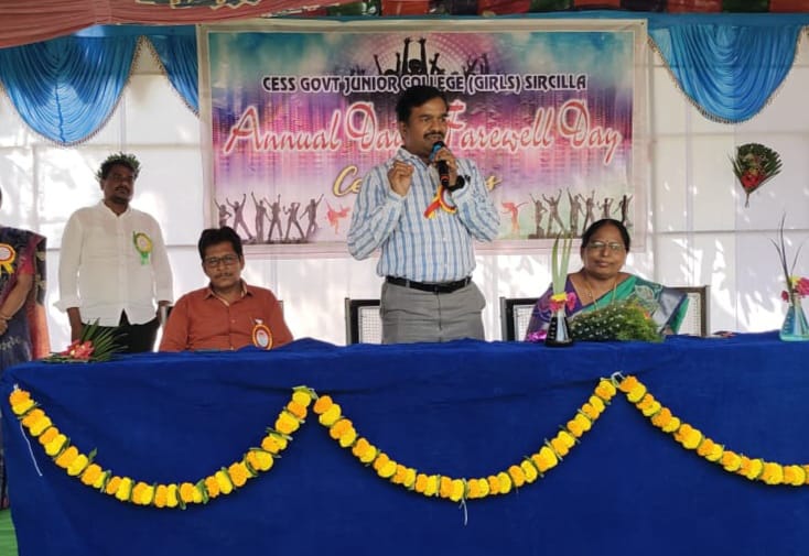 RSD- Sircilla news: On 22.02.2025, the Sports and Cultural Day and farewell program for the second year students was organized in the local government girl’s junior college, Siricilla. The meeting was chaired by the college principal, Mrs. G. Vanaja Kumari. The District Intermediate Education Officer, Y. Srinivas, and the Principal of Vemulawada Junior College, Sarath Kumar, were the chief guests. The DIEO sir said that the students should study hard and achieve good results in the upcoming annual examinations and bring a good name to our Rajannasiricilla district at the state level. The college principal said that the students should study well, set a goal and try to achieve it. Later, prizes were given by the chief guests to the winners of various sports & cultural competitions. Later, the students enlivened the program with games and songs. College lecturers Murali, Seetharam, K. Sunitha, Srinivas, Praveen Kumar, Naveen Reddy, Zabiullah, Afroz Sultana, M. Sunitha, Ganga Raju, Bhupal, Anitha and office staff participated in this program.