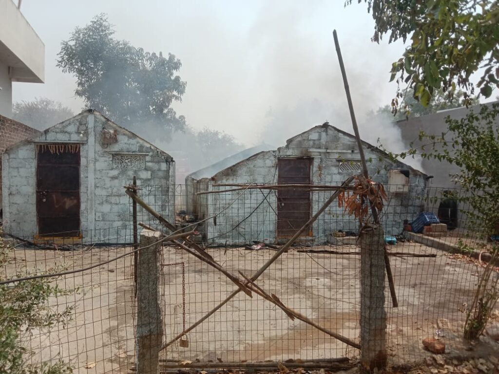 On 13.04.2023, two houses were burnt due to short circuit in Babaji Colony in Tangallapally mandal center. According to the details of the victims, Mekala Bikshapati and Mekala Murali of Babaji Colony in Mandal Center locked their houses and went to work. In this sequence, fire broke out due to short circuit and the two houses next to each other were completely burnt. The local people noticed and informed the fire station and the fire personnel reached the spot and extinguished the fire. The houses were completely burnt. Sarpanch Anitha villagers asked the government to help the affected families as two houses of the victims belonging to poor families were completely burnt.
