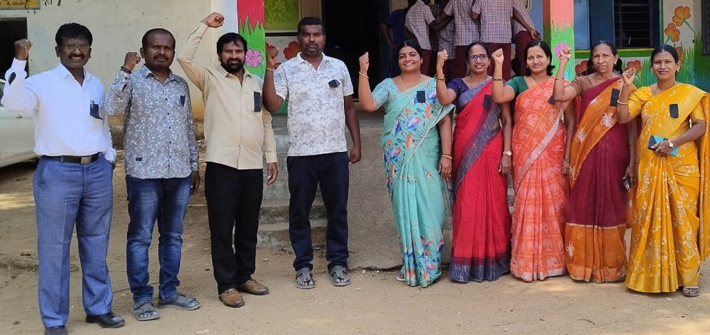 RSD- Chandrampet news: As part of the action plan announced by the TGE JAC to achieve the just and unresolved demands of government employees and teachers, a protest was staged on 17.04.2026 during the lunch break at the Chandrampeta Zilla Parishad High School led by High School Headmistress Kairi Padma and Primary School Headmistress Tanniru Padmaja, the participants expressed their dissent by wearing black ribbons. Speaking at the protest program, M.A. Khadri, President of the Telangana Employees Association for the combined Karimnagar district, stated that the government’s negligent attitude regarding the resolution of issues concerning employees, teachers, and pensioners is unacceptable. He demanded the immediate release of Dearness Allowance (DA) arrears and the announcement of the Pay Revision Commission (PRC). Kondi Koppula Ravi, President of the TTU for the Rajanna Sircilla district, expressed deep anguish, noting that due to government delays, both retired employees and those currently in service across the state are facing severe hardships. He demanded the immediate issuance of health cards, clearance of pending bills, and disbursement of retirement benefits. He urged the government to resolve their issues with a humanitarian perspective, at least at this stage. Teachers Vadyarapu Madhusudhan, P. Anil, Vemula Anjali, Munja Rama, Vengala Pallavi, and others participated in this protest program.