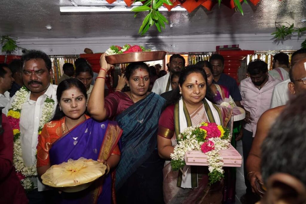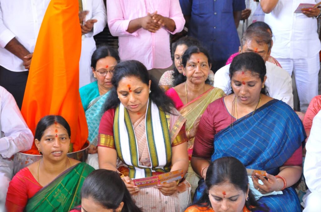 MLC Kalvakuntla Kavita wished all the people of the state to be blessed with the grace of Kondagattu Anjaneswamy. After performing special pooja at the Kondagattu temple on 10.05.2023, MLC Kavita participated in the Hanuman Chalisa recitation program conducted there.