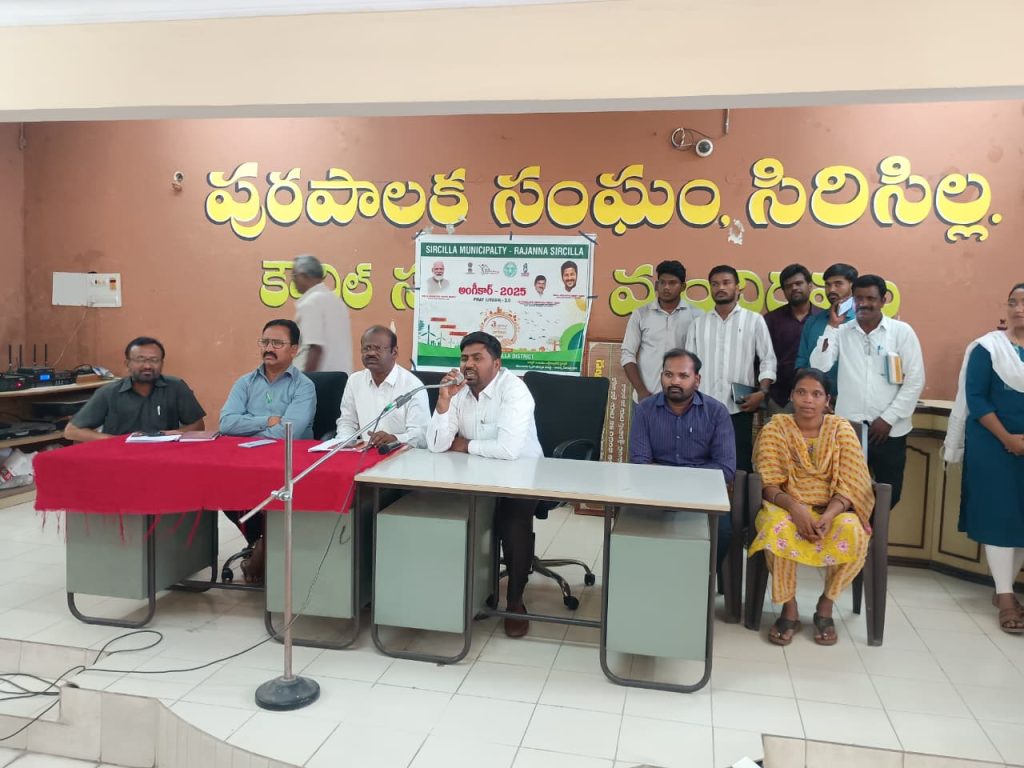 RSD- Sircilla news: Angekaar-2025 program was organized under the Sircilla Municipal Commissioner. Beneficiaries of Indiramma Houses and PD Housing officials participated in this program. In this program, the Commissioner informed that if the beneficiaries of Indiramma Houses complete the construction of their houses as instructed by the government, the concerned officials will take steps to ensure that the bills related to the house are immediately credited to respective beneficiary’s account. In this program, the solar power kit subsidy as part of the central government schemes was explained and an awareness program was organized about the use of renewable energy sources.