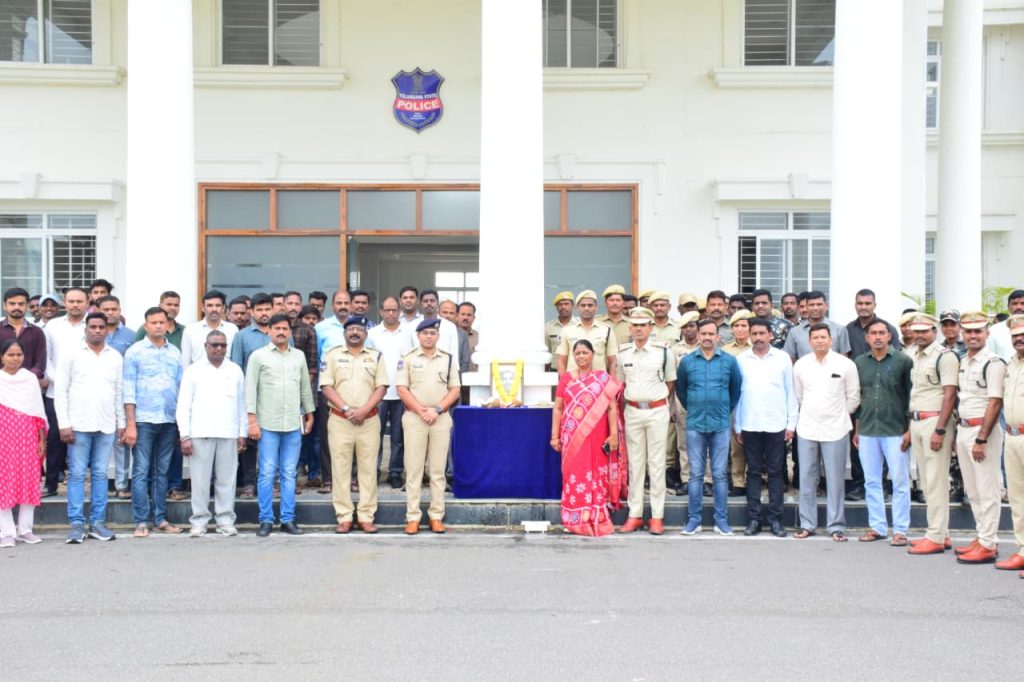 RSD- Sircilla news: On the occasion of Chityala Chakali Ailamma Jayanti, the District Police Office premises garlanded the portrait of Chakali Ailamma and paid tributes to her. District SP Mahesh B. Gite IPS., praised Chakali Ailamma as a Telangana armed struggle fighter, a symbol of self-respect of the lower classes, and a brave woman who broke slavery and gave consciousness to the society. Additional SP Chandraiah, CIs Nageswara Rao, Madhukar, RIs Ramesh, Yadagiri, A. O. Padma, SIs, police office staff, and police personnel participated in this program.