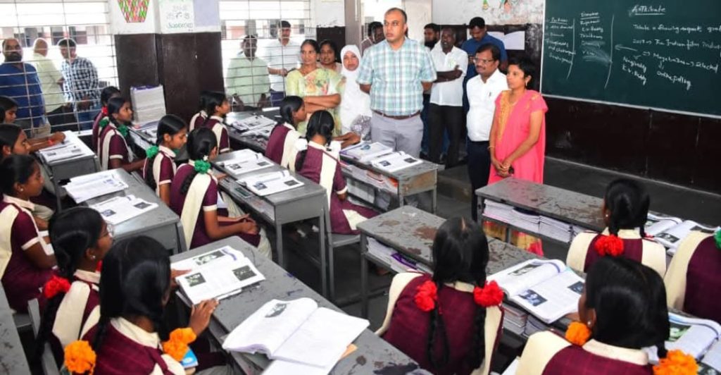 RSD-Gambhiraopet news: Collector Sandeep Kumar Jha has ordered that the curriculum should be taught to the students in an easy manner and that they should master all subjects. The Collector conducted a surprise inspection of Telangana Social Welfare Residential School in Narmala, Gambhiraopet mandal on 02.09.2025. On this occasion, he personally inspected all the classrooms and kitchen in the school.Maths, Physics, Chemistry, English and Hindi lessons were taught to students of classes 7,8,9,10. Students were asked many questions and got answers. The ninth grade students expressed their impatience with the teacher after noticing that they could not read the syllabus in the Hindi textbook.The officials were advised to repair the windows and install meshes to prevent mosquitoes, insects and snakes from entering the school rooms, and to repair the roof to prevent water leakage and water accumulation on the building. The Panchayat Secretary was instructed to keep the surroundings of the school and staff quarters premises clean at all times.On this occasion, the Collector spoke. He advised that education should be taught in a way that the students can understand. He ordered that all the subjects should be taught in a better way so that the students can grasp them. The Collector clarified that he would come back to the school in another 15 days and inspect it.The school principal, teachers, market committee chairperson Vijaya, Siricilla RDO Venkateshwarlu, Tahsildar, MPDO, local leaders and others participated in the program.