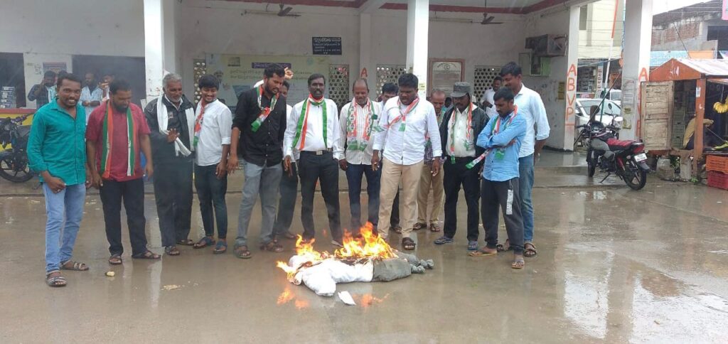 RSD- Illantakunta news:In Illanthakunta mandal center under the leadership of Mandal Congress Party, KTR effigy was burnt to protest against Rahul Gandhi’s inappropriate remarks. On this occasion Manakondur Constituency Youth Congress President Antagiri Vinay Kumar said in the press meet that the Minister KTR not only spoke inappropriately to the top leader Rahul Gandhi but also said that the Congress party has no knowledge about agriculture. Rahul Gandhi goes to clubs and pubs, he doesn’t know rice, he doesn’t know dairy. He spoke and reminded that Congress party has the credit of bringing green revolution and milk revolution in this country and building many cultivated water projects and turning agriculture into a festival. Today India has grown to the level of exporting food grains to 250 countries in the world. Considering reservoirs, modern temples, Congress has built many projects like Nagarjuna Sagar, Srisailam and Sriram Sagar. The government has taken many measures for the welfare of the farmers, at the same time waiving off loans and freeing the farmers from debt, the Congress party has given free electricity to agriculture in Andhra Pradesh for the first time in the country and initiated revolutionary changes. Criticizing national leader Rahul Gandhi by KTR who lives by selling drugs in a pub in a club, warned that if he speaks again, his tongue will be torn out. Former Mandal Congress President Pasula Venkati, Antagari Balapochaiah, Minority President Jamal, Youth Congress President Errozu Santhosh, Urban Congress President Mamidi were present at the event. Naresh, presidents of village departments Doosa Raju, Badugu Lingam, Vadde Koteshwar, Rajender Reddy, Baddam Hanmantha Reddy, Ramana Reddy, Nyatha Babu and others participated.