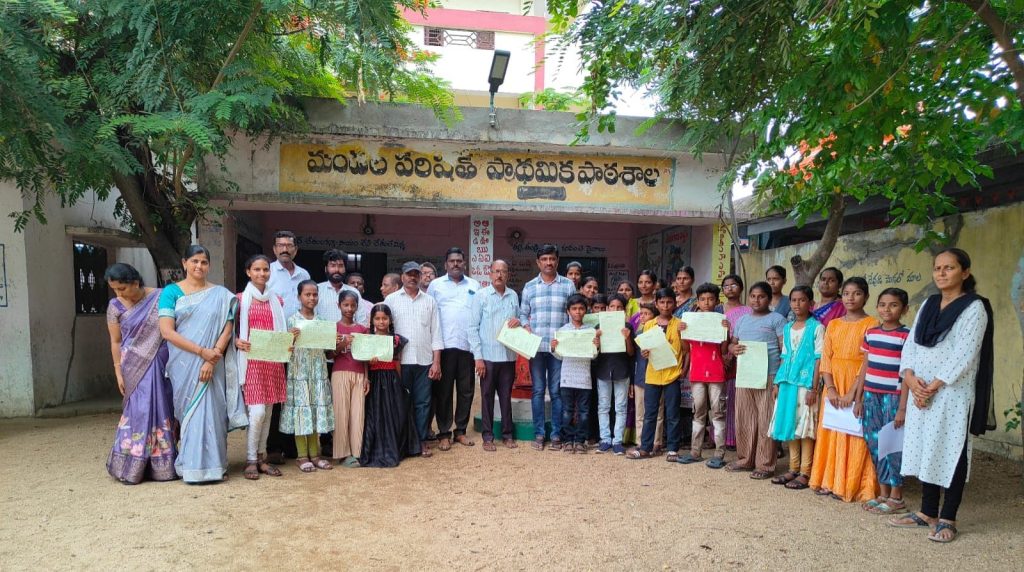 RSD- Sircilla news: As part of Professor Jayashankar’s Badibata, a team of teachers from Kusuma Ramaiah Boys High School Siricilla visited B Y Nagar Primary School on 13.06.2025 and made parents and students aware that quality education is available only in government schools. Subsequently, a large number of 5th grade students studying in B Y Nagar School took admission in Kusuma Ramaiah School. Approximately 47 students in grades 6, 7, and 8 from the children living in B Y Nagar habitation took admission in the school. A literacy program was organized on 13.06.2025 for the newly admitted students in the primary school. In this program, PS B Y Nagar Principal Myna Anjaneyulu, Staff Secretary Kumari Mallesham, Pakala Shankar Goud, Koppu Ramulu, Madhavi, Rajitha, Jyoti, and Parameshwari, parents of the students participated.