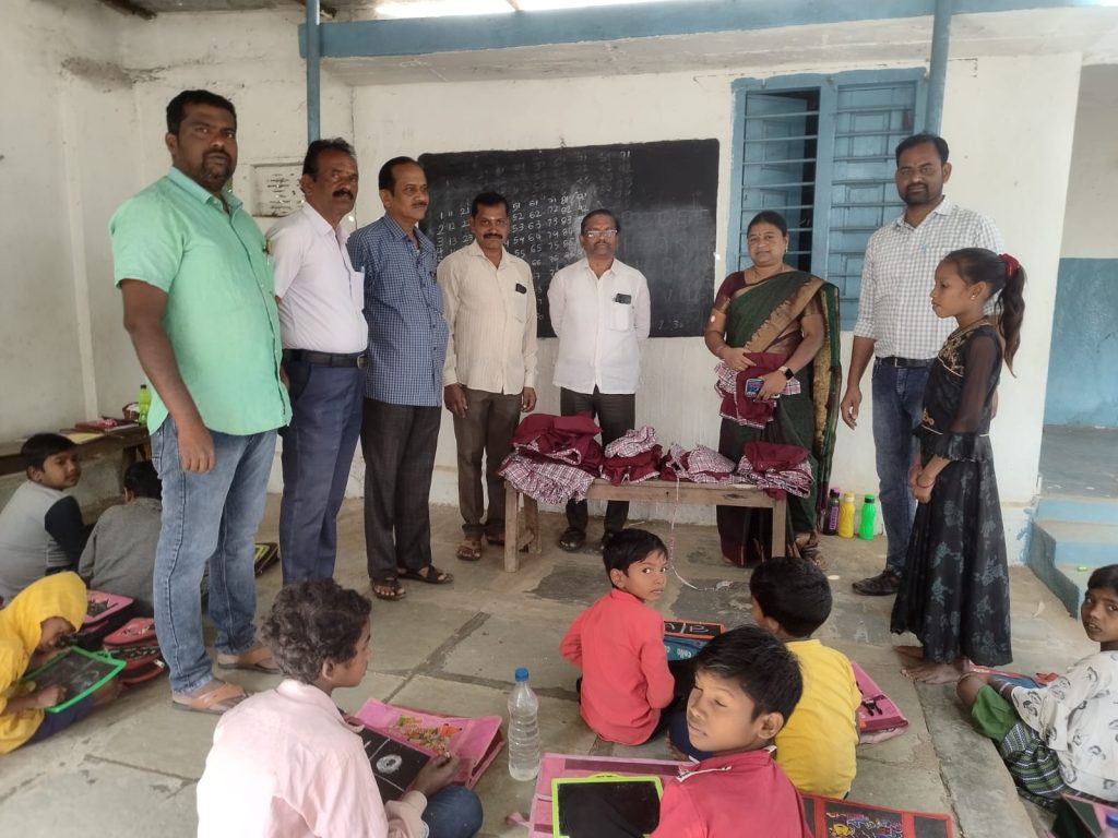 RSD- Chandrampet news: Surveyed as part of OSC survey, C.R.P.P. Ravi Kiran identified 60 poor children and enrolled them in the school. They were given uniforms on 06.01.2024 by MEO. All the children were provided with bags, notebooks, tablets. Two education volunteers have been appointed for them. Lunch is provided daily. In this program SMC chairman K. Sridhar, ZPHS Chandrampet principal Srinivas, Mpps- Chandrampet Principal S Devendra, teachers K. Ravi, P Ramchander Rao and others participated.