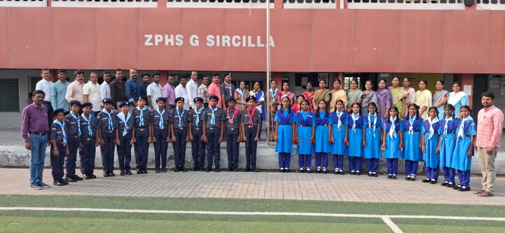 RSD-Sircilla news: On 16.03.2026, a grand initiation ceremony for the Scouts and Guides was held at the school. During this event, 16 Scouts and 16 Guides took their pledges. As part of the PM-SHRI initiative, Scouts and Guides uniforms were distributed to them. The primary objective of the Scouts and Guides movement is to cultivate positive values among students such as patriotism, a spirit of service, discipline, compassion towards nature and animals, and a sense of duty towards the elderly. The event was attended by Headmistress Ms. Sarada, Ms. Anuradha, Mr. Tirupati, Guide Teacher Ms. Kondikoppula Manjula, Scout Master Mr. Tadukala Suresh, along with other teachers and students.