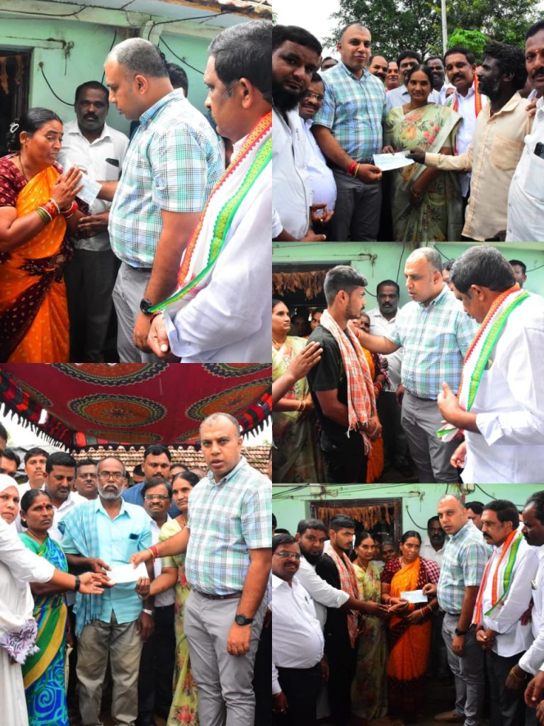 RSD-Gambhiraopet news: As per the orders of CM Revanth Reddy, the state government has provided financial assistance to the family of a person who went missing at the Upper Maneru project in Narmala, Gambhiraopet mandal. Compensation cheques have also been distributed to the owners of cattle who died in the flood.Pampukadi Nagayya went missing while crossing Maneru at the Upper Maneru project in Narmala, Gambhiraopet mandal. Officers and staff from five departments are already searching to find his whereabouts. On this occasion, Collector Sandeep Kumar Jha handed over a cheque worth Rs. 5 lakh to Lakshmi, wife of Pampukadi Nagayya on 02.09.2025.Two cattle belonging to Gaddameedi Manemma of Lingannapet village in Gambhiraopet mandal and one cattle belonging to Praveen Goud were lost in the flood. Due to this, compensation cheques worth Rs. 1 lakh to Gaddameedi Manemma and Rs. 50 thousand to Praveen Goud were handed over by the state government through District Collector Sandeep Kumar Jha.Market Committee Chairperson Vijaya, Siricilla RDO Venkateswarlu, District Animal Husbandry Officer Ravinder Reddy, Tahsildar, MPDO, local leaders and others participated in the program.