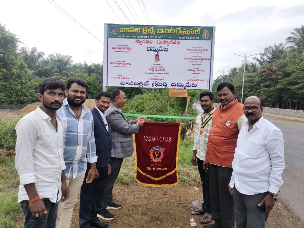 RSD- Dammapeta news: Vasavi Club Greater Dammapeta organized Dawn to Dusk 2025 under the Dammapeta Mandal Center. A welcome name board was installed in front of the local Ayyappa Swamy Temple in Dammapeta and notebooks were distributed to the students at the primary school in Banjara Colony. Later, Mahesh, an army jawan from Dammapeta village, was honored at the local Vasavi Bhavan. Vasavi Club International Vice President Potti Srinivas was the chief guest of the program. Speaking on the occasion, they said that Vasavi Club is at the forefront of community service and these programs were organized as part of Dawn to Dusk. Vasavi Club International Coordinators Dara Mallikarjuna Rao, Attuluri Purushottam Rao, Regional Chairman Bhogavalli Rambabu, Vasavi Club Greater President Mandavalli Suresh, Secretary Charu Gundla Pradeep, Treasurer Dodda Vinod, Mandal Arya Vaishya Sangam President Pasumarthi Rambadram, and club members participated.